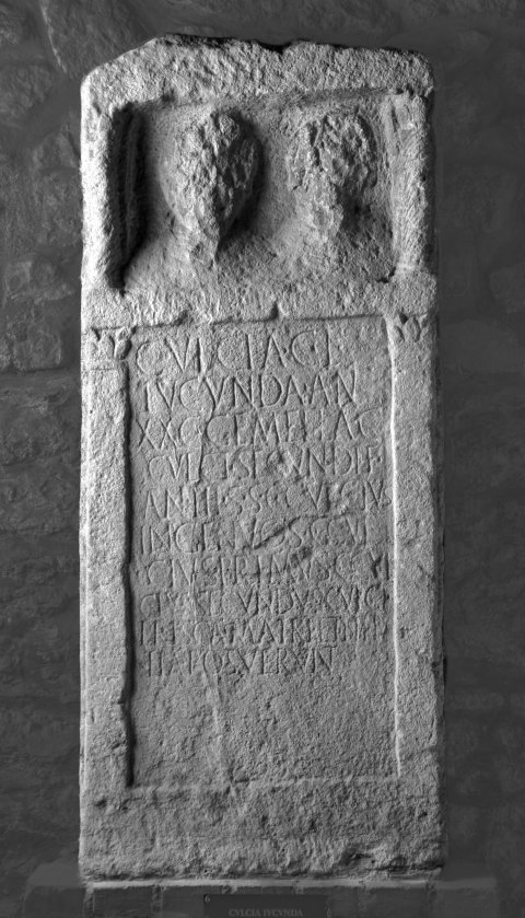 - Culcia C(aii) l(iberta) / Iucunda an(norum) / XXC Gemella C(aii) Culci(i) Secundi f(ilia) / an(ni) I h(ic) s(itae) s(unt) C(aius) Culcius / Ingenuos C(aius) Cul/cius Primus C(aius) Cul/cius Secundus Culc(ia) / Prisca matri et nep/ti a(mantissimae) posuerunt