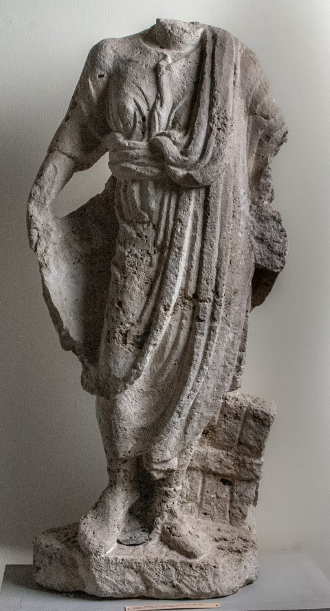 - stehender Togatus : lange Tunica, Toga, neben dem linken Fuß Rollenbehälter