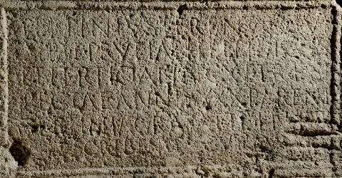 - Tertinius Terentius v(ivus) f(ecit) / sibi et Rufiae Helpidi con(iugi) / et Tertio ann(orum) CX et Res/pectae ann(orum) LXXXX parent(ibus) / Tertinia Grata fi(lia) ben(e) mer(entibus) / scribend(um) curav(it)