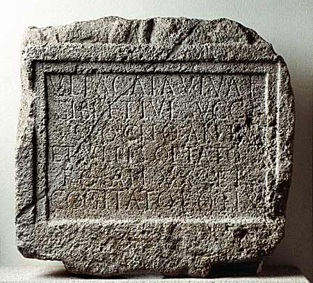 - Ul(pia) Pacata viva f(ecit) / sibi et Iul(io) Succe/sso con(iugi) o(bito) an(norum) LV / et Ulpi(i)s Optato / f(ilio) o(bito) an(norum) XXX et / Cogitato f(ilio) o(bito) an(norum) XXV