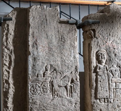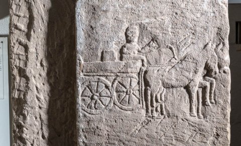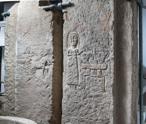 4556 Platten mit Totenopfer und Wagenszene