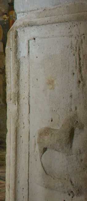 - in einem Pfeiler in der Kirche verbaut, Sockel u. Bekrönung fehlen