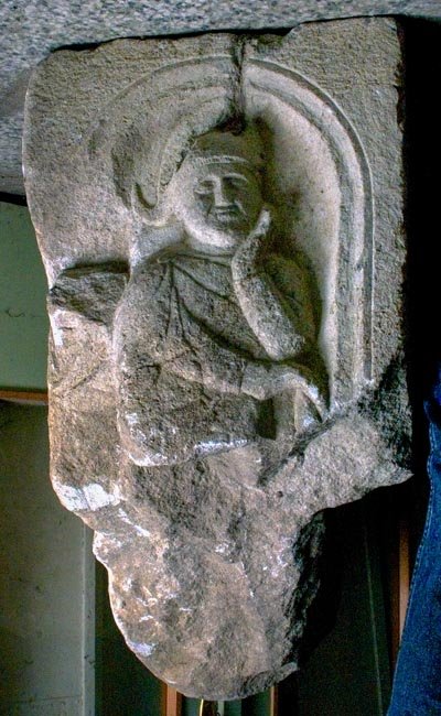 Auf der erhaltenen Nebenseite rundbogig gerahmtes Bildfeld mit trauerndem Attis. - Inschrift