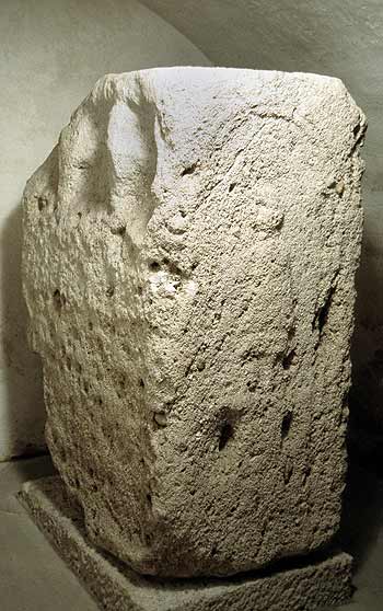 - stark verwittert, Inschrift abgerieben, Sockel u. Bekrönung fehlen