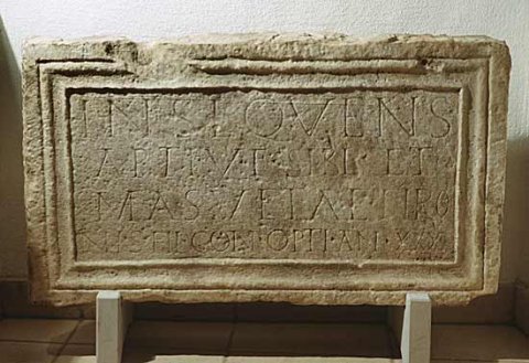 - Insequens / Apti v(ivus) f(ecit) sibi et / Ma(n)suetae Tiro/nis fil(iae) con(iugi) opti(mae) an(norum) XXX
