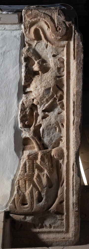 - Im Altar der Kirche verbaut, früher im Haus der Frauen, Speisesaal