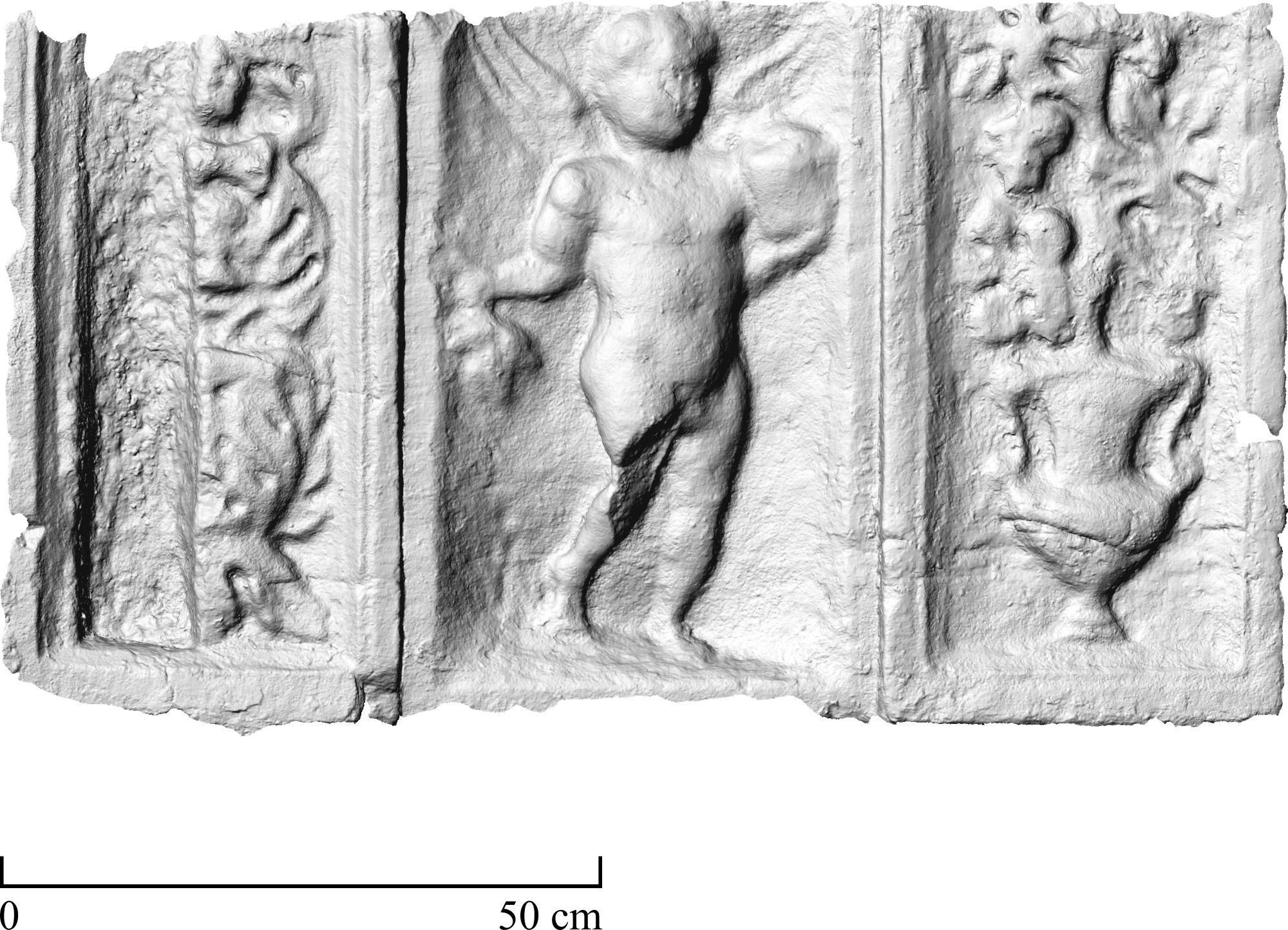 4637 Relieffelder mit Akanthus, Erot mit Traube und Krater mit Weinranken