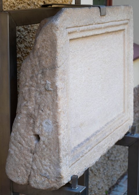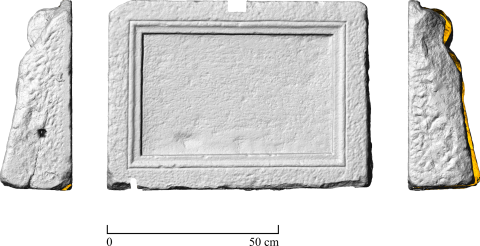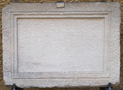 - gerahmtes Feld, Teil eines Grabbaus, unten Dübelloch