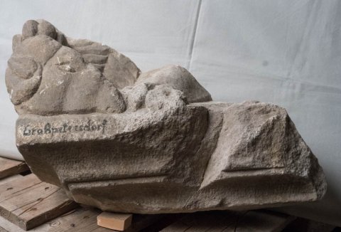 - 1926 am Eingang einer gemauerten Grabkammer gefunden