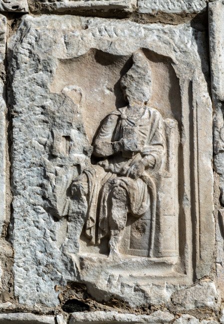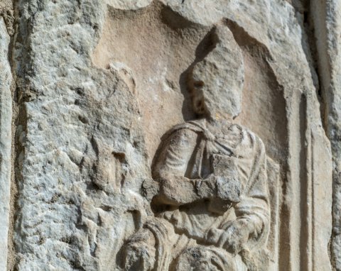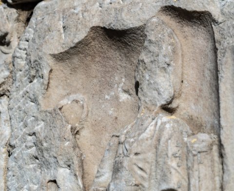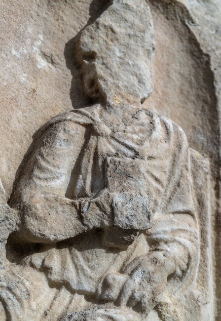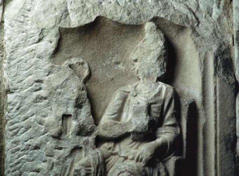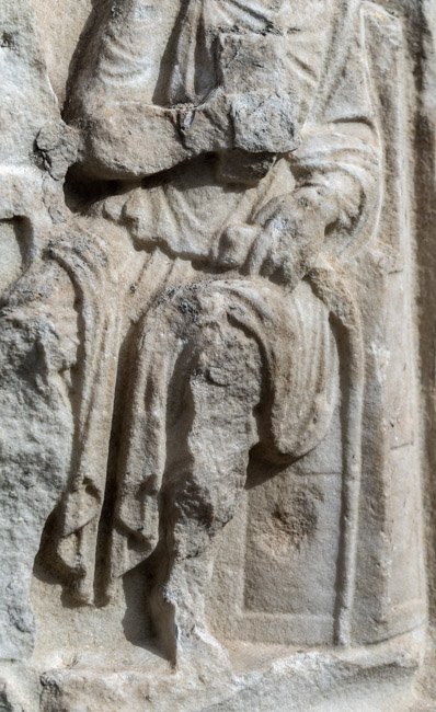 - Mythos (Troja, Parisurteil), Musikinstrument: rechts auf Lehnsessel Paris in orientalischer Tracht (phrygische Mütze, Ärmeltunica, langer Mantel, Hosen), in der Rechten Syrinx, in der Linken Pedum (?). Links Reste des Mercur mit Caduceus.