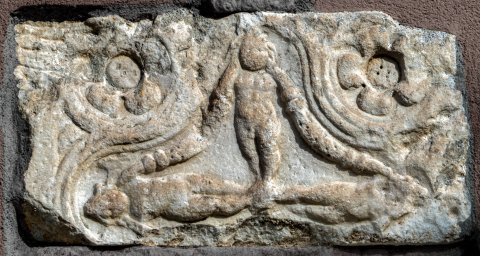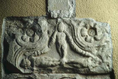 - Vierpassornament, außen Medaillons mit Rosetten, innen kreuzförmig angeordnete Genien mit Girlanden.