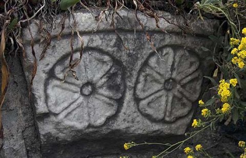 - Fragment eines Bogens mit Rosetten auf der Vorderseite.