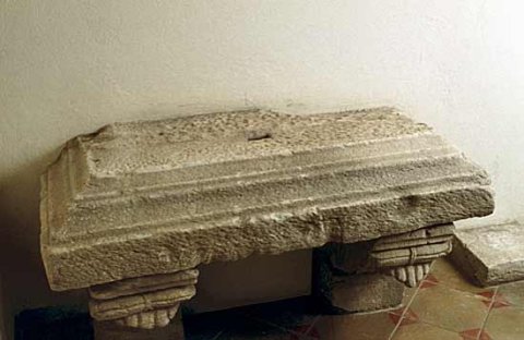 - Platte mit Profilierung an drei Seiten, Rückseite abgeschrägt.