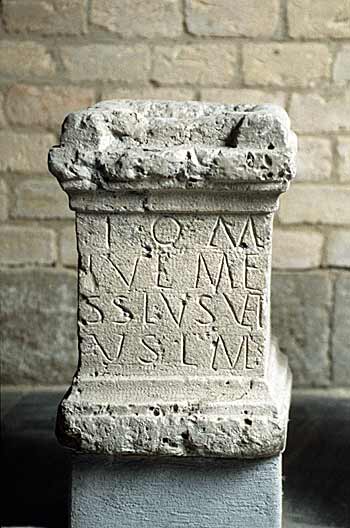 - I(ovi) o(ptimo) m(aximo) / Iul(ius) Me/ssius vet(eranus) / v(otum) s(olvit) l(ibens) m(erito)