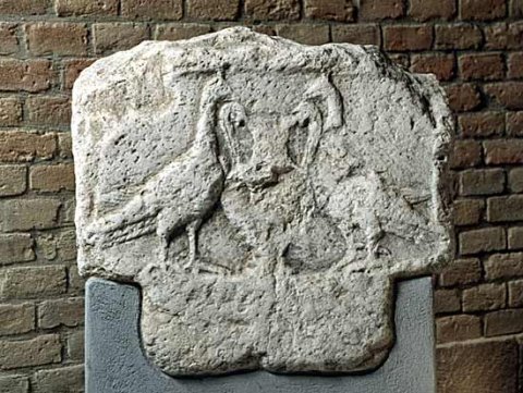 - Sockelrelief mit Krater zwischen zwei Pfauen