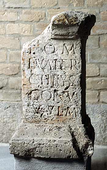 - I(ovi) O(ptimo) M(aximo) / L(ucius) Valer(ius) / Chryso/gonus / v(otum) s(olvit) l(ibens) m(erito)