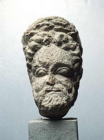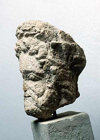 - Historische Person: Porträt des Kaisers Commodus (?). Frisur und Vollbart gelockt, auf dem Kopf Lorbeerkranz.