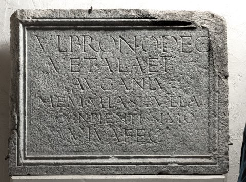 - Ulp(io) Ronodeo / vet(erano) alae I / Aug(ustae) an(norum) LV / Memmia Sibulla / con(iugi) pientissimo / viva fec(it)