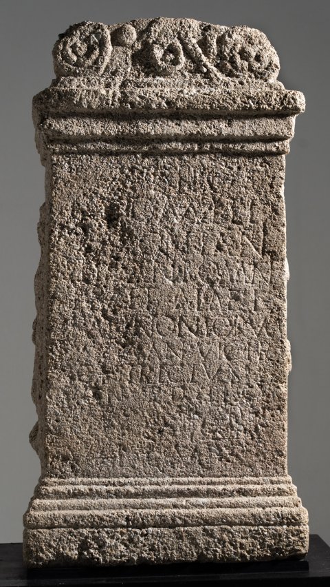- Genio / C(ai) [D]omiti / Montani / Sept(imi) An(ni) Romani / praef(ecti) alae I / Pannoniorum / Tampian(ae) victr(icis) / Castricius / Sab[i]nus duplicar(ius) / alae eiusdem / aram consecrav(it) / v(otum) l(ibens) m(erito) s(olvit)
