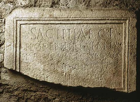 - Sagittiae C(aii) f(iliae) / Florentinae an(norum) XX/I Iulius Verecundus /coniugi v(ivus) f(ecit) / sibi et suis
