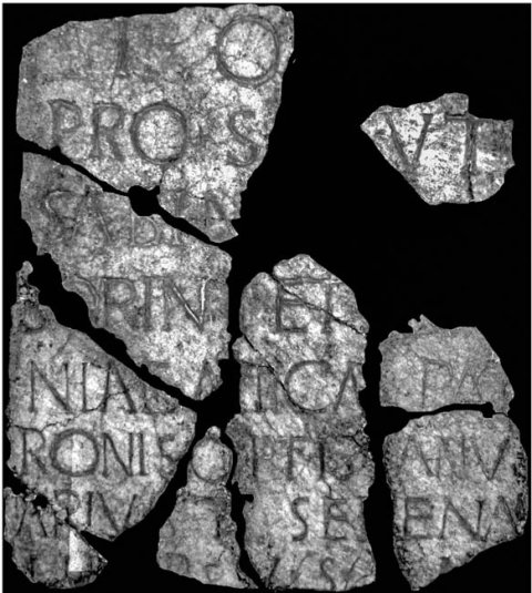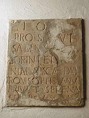 - I(ovi) O(ptimo) [M(aximo)] / pro s[al]ut[e] / Sabin[i Cen]/sorini et Lic[i]/niae Atticae pat/ronis opti(mis) Ianu/arius et Serena / lib[e]r(ti) v(otum) s(olverunt) [l(ibentes)] m(erito)