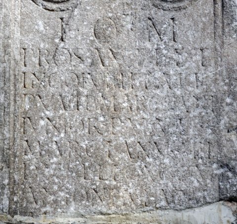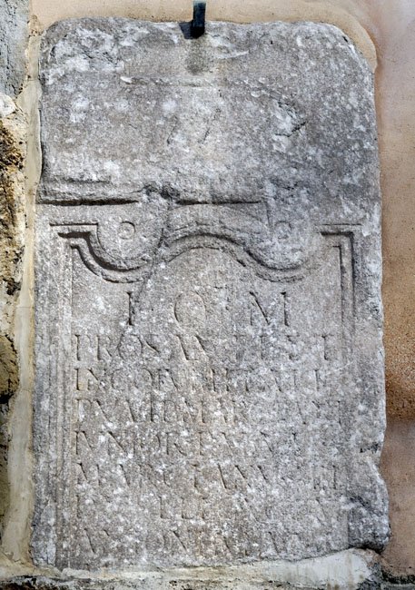 - I(ovi) O(ptimo) M(aximo) / pro salute et incolumitate / P(ubli) Val(erii) Tib(eriani) Marciani / Iunior(is) P(ublius) Val(erius) / Marcianus mil(es) / dupl(arius) leg(ionis) X Gem(inae) / Antoninian(a)e / adiut(or) P[RAETER] / et Grecinia [P(ubli) fil(ia)] / [Priscilla] / [parent(ibus) v(otum) s(olverunt)]