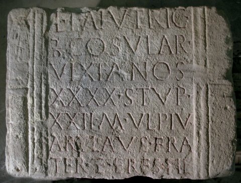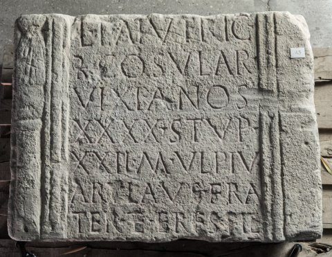 - ---] / l(egionis) I A(d)iutric(is) / b(ene)f(iciarius) co(n)sular(ius) / vixi(t) an(n)os / XXXX stup(endiorum !) XXII M(arcus) Ulpiu(s) / Artlaus fra/ter et (h)eres pie/[---