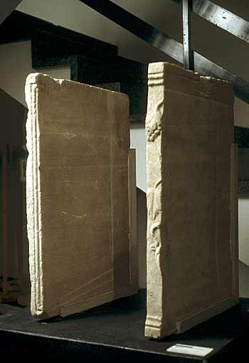 - 1959 als Bodenbelag eines Nischengrabes in der roman. Westkrypta