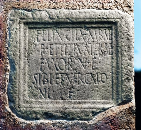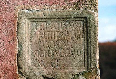 - Felix Cilumbae / f(ilius) et Titiu Aterae / f(ilia) uxor v(ivi) f(ecerunt) / sibi et Vircaio/ni f(ilio)