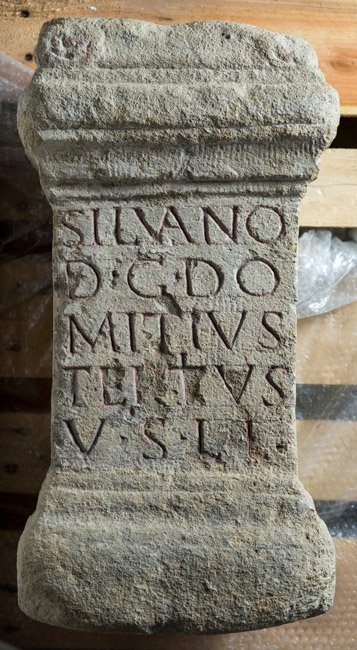 - Silvano / D(omestico) C(aius) Do/mitius / Tertius / v(otum) s(ovit) l(ibens) l(aetus)