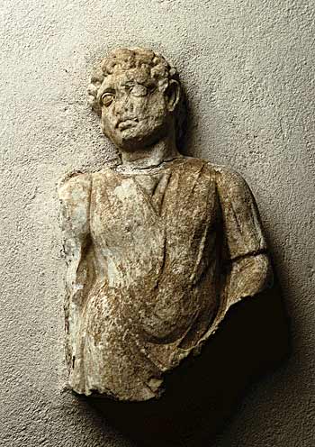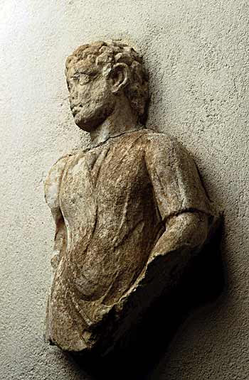 - Diener : stehender Jüngling mit kurzen Locken in kurzer, ungegürteter Tunica