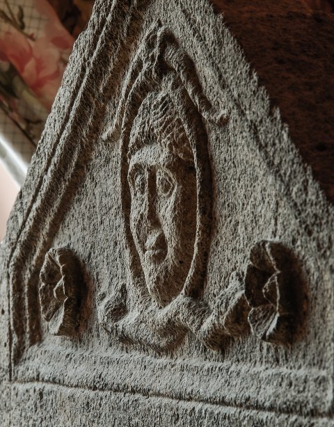 - Im Giebel Gorgoneion zwischen Rosetten.
