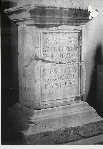 - Altar 2.Jh., Inschrift bezieht sich auf die Konferenz der Kaiser Diocletian u. Galerius (Iovii) u. Maximian (Herculius) in Carnuntum