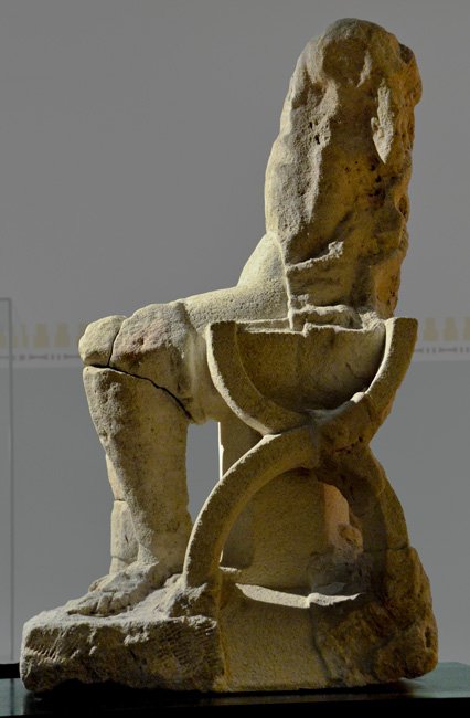 - aus mehreren Fragmenten rekonstruiert, stark verwittert, Kopf, rechte Hand u. linker Arm abgebr.