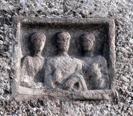 - Familie: in Rechtecknische Brustbilder von einer Frau (links) und zwei Männern. Der rechte Mann in Toga ?