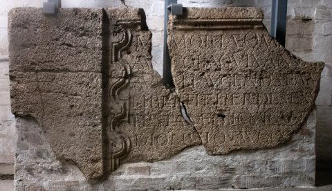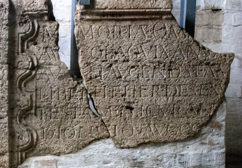 - M[e]moriae q(uondam) M[----] / Au[g(ustali)] col(oniae) Aq(uinci) vix(it) ann(os) XLI / M(arci) Aureli(i) Augendus et Am[andus] / liberti et heredes ex v(oluntate) / testamenti curan[tibus Decimio] / Dionisio Aug(ustali) co[l(oniae) s(upra)s(criptae) et (Au)relio (Pa)pi(a) vet(erano) leg(ionis) II adi(utricis) f(aciendum) c(uraverunt)]