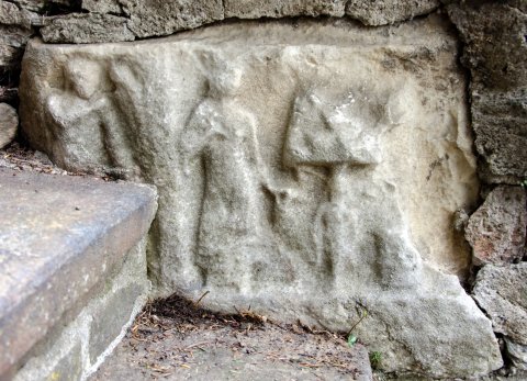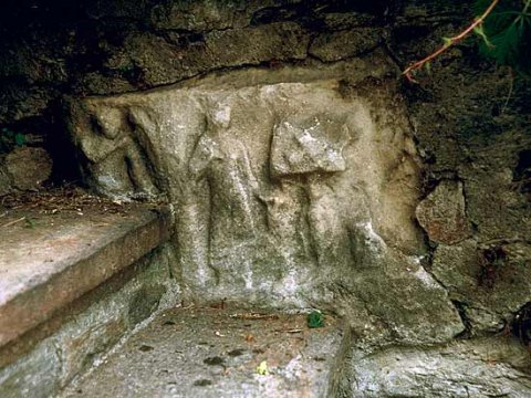- in die Wangenmauer der Gartentreppe des Schlosses eingem.
