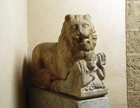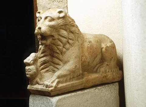 - mittelalterlich überarbeitet und ergänzt (Vorderpranken mit kleiner menschlicher Figur), verwittert
