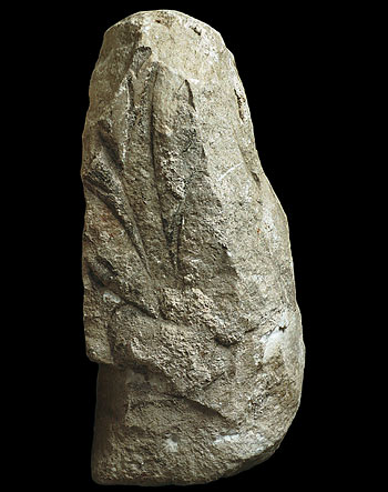 - Eckblock: auf der Vorderseite Akanthuskelch, aus dem Spiralranken wachsen. Auf der linken Nebenseite Reliefreste.