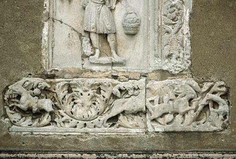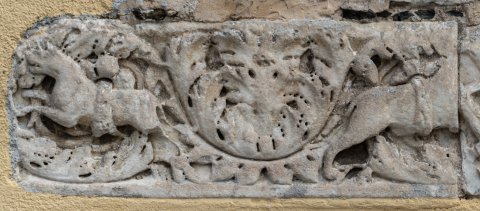 - Zwischenfries (?) mit Tieren: Akanthuskelch und-ranken, darin Panther und Hasen.
