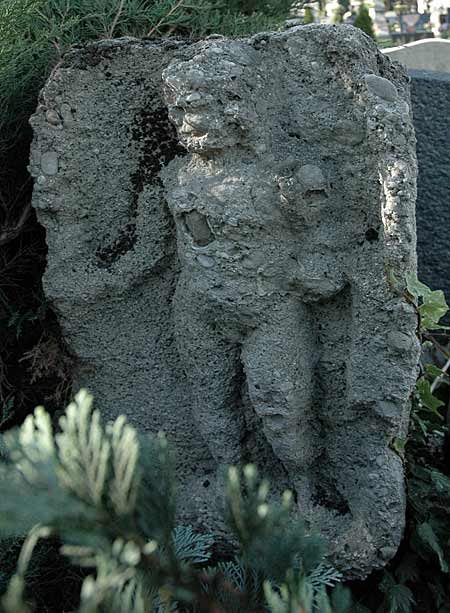- Jahreszeit (Herbst) ?: nackter Knabe, Mantel um linken Arm, in der Rechten Traube (?).