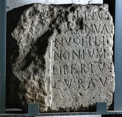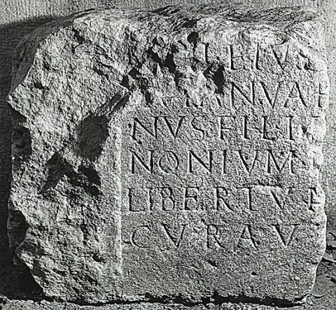 - ---] /[-]+i eius [---] / [-]+ Ianuar[ius et ---]/nus fil(i) I+[--- per] / Nonium +[----] / libertum [faciendum] / curav[erunt]