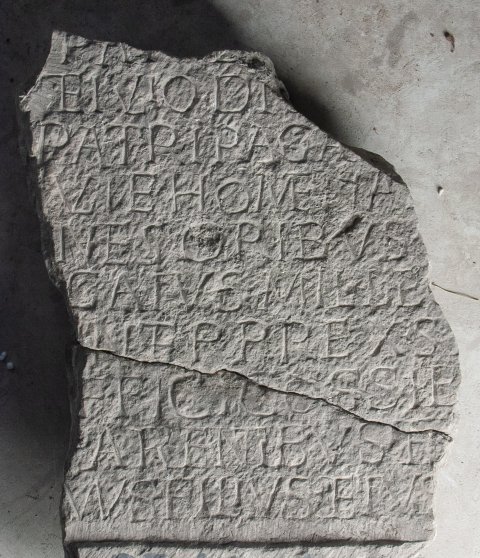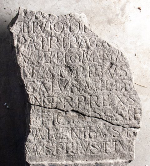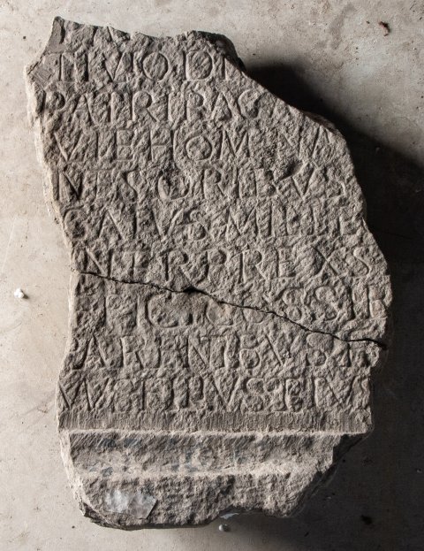 - ---] / [---[PA++++[---] / [---] et Iulio Dio[---] / [---] patri Paga[---] / [---] Iuli(a)e Homena+[---] / [---]nte sor(or)ibus? [---]/ [Iulius Ro?]gatus mil(es) leg(ionis) [---] / [---] interprex Sa(rmatarum?) [---] / [--- ex o]ffici(o) co(n)s(ularis) sib[i ---] / [---] parentibus et +[---] / [---]mus filius eius [---]