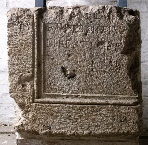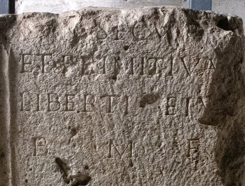- ---] / [---] Secu[ndus] / et Primitiva / liberti eiu[s]) / b(ene)m(erenti) f(ecerunt)