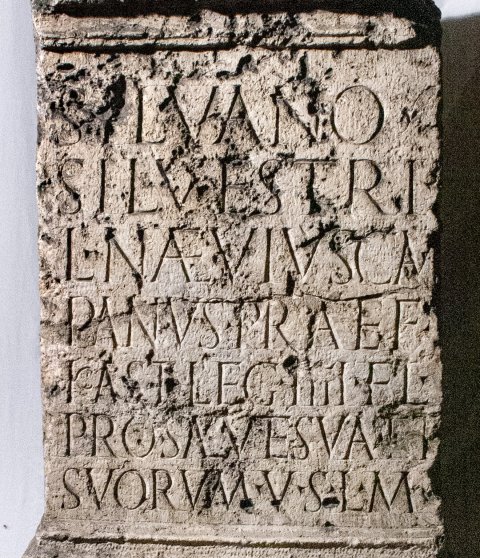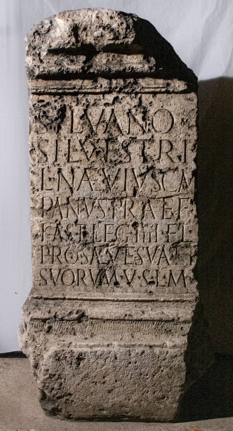 - Silvano / Silvestri / L(ucius) Naevius Cam/panus praef(ectus) / kast(rorum) leg(ionis) IIII Fl(aviae) / pro salute sua et / suorum v(otum) s(olvit) l(ibens) m(erito)