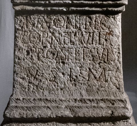 - Iunoni Reg(inae) / Cornel(ia) Iulia / pro se et suis / v(otum) s(olvit) l(ibens) m(erito)