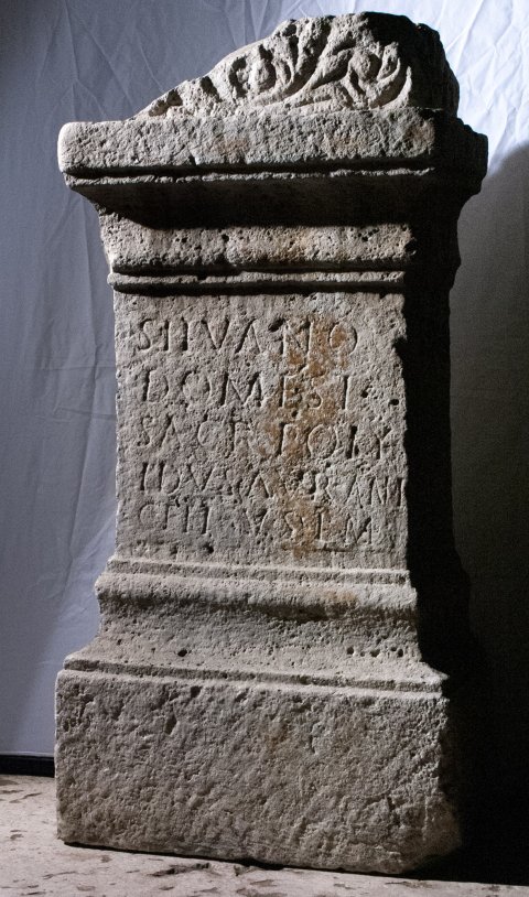 - Silvano / Domest(ico) / sacr(um) Poly/idus Aur(elii) Ani/ceti (servus) v(otum) s(olvit) l(ibens) m(erito)