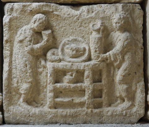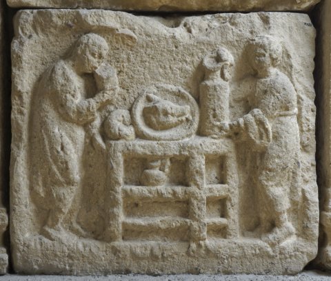 512 Relief mit Paar beim Anrichten von Speisen