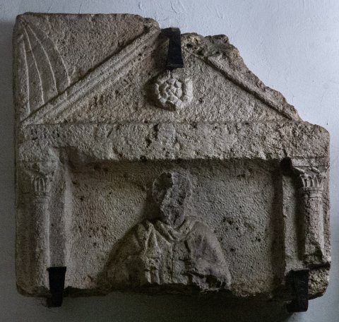 - unten abgebr., rechte obere Ecke fehlt, Relief tlw. abgeschlagen