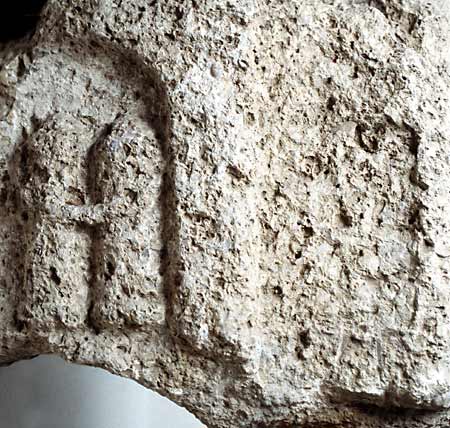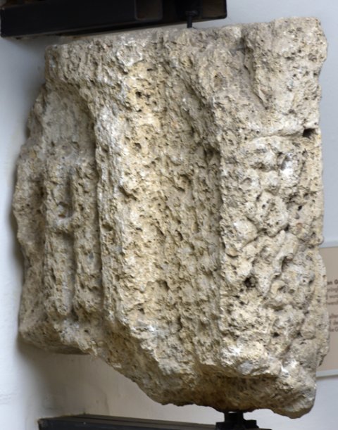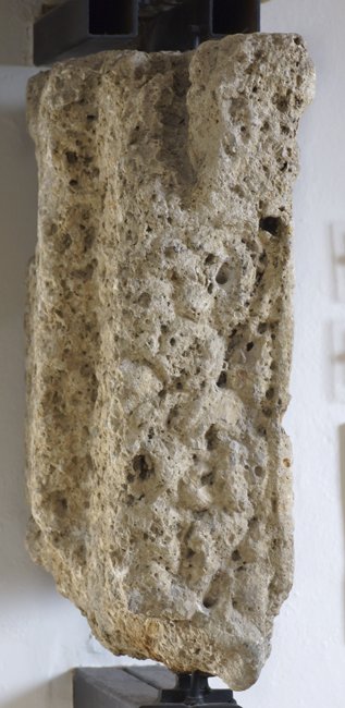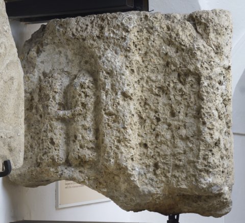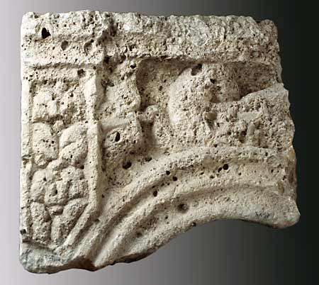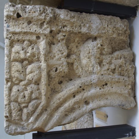 - Fragment einer Doppelarkade, rechts u. unten abgebr., in der Oberseite Klammerloch